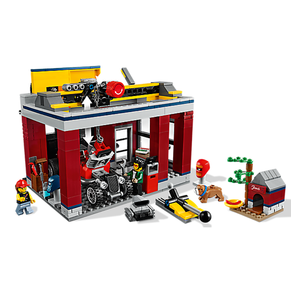 Deze LEGO® City set heeft een mooie werkplaats en de eigenaar meneer Tread Octane is enorm trots op zijn bedrijf. Het is zijn lust en zijn leven. Hij is een eerlijke autodealer die zowel tweedehands auto’s verkoopt, als ook enorm coole nieuwe voertuigen verkoopt maar ook klassiekers. Meneer Octane is de beste autodealer in de stad en iedereen kent hem. Je auto laten repareren is ook mogelijk en een grote of kleine beurt wordt ook zo even tussen de bedrijven door gedaan. Meneer Octane heeft een sleepwagen, de sleepwagen wordt door zijn werknemer meneer Harl Hubbs bestuurd. Meneer Hubbs scharrelt altijd de leukste en mooiste auto’s op voor spotprijzen, zodat deze weer opgeknapt worden en als nieuw verkocht kunnen worden. Nee kijk nou, wat een juweeltje brengt Meneer Hubbs nou naar de werkplaats! Een super coole rode raketmotor. Wow, hier wordt meneer Octane wel heel erg blij van. Door middel van de takel in de werkplaats kunnen de auto’s op worden gekrikt, zodat kapotte voertuigen van onder ook gerepareerd worden. Het is altijd druk bij de werkplaats, repareren – verkopen – handelen.