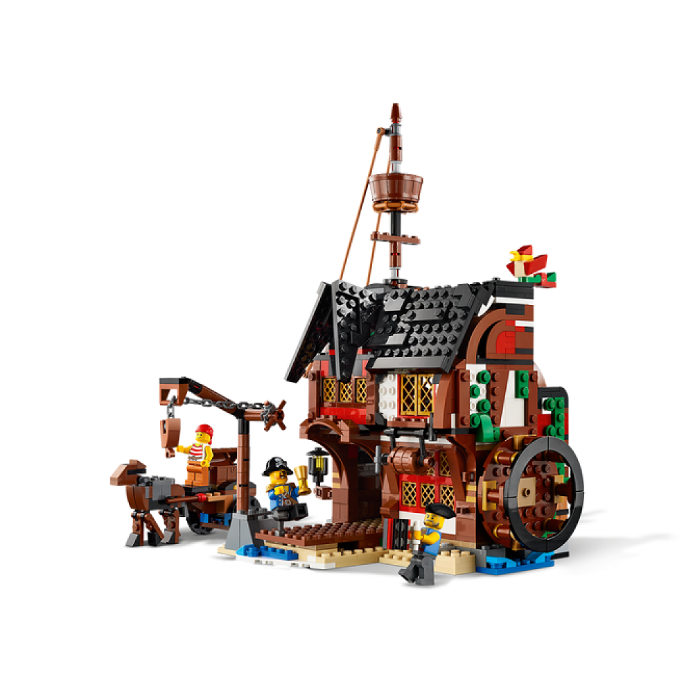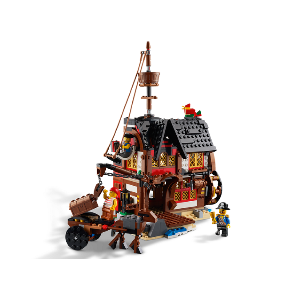 De set bevat drie minifiguren, steentjes om twee dierenfiguren te bouwen en uiteraard de drie bouwmodellen. Het piratenschip, het pirateneiland en de kroeg.